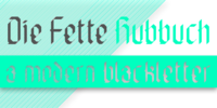 Die Fette Hubbuch is a contemporary blackletter typeface, based on a geometric grid. Contrary to the most classical blackletter typefaces, this typeface has no curves. Those individual letter forms were created by using only 45°-angles.